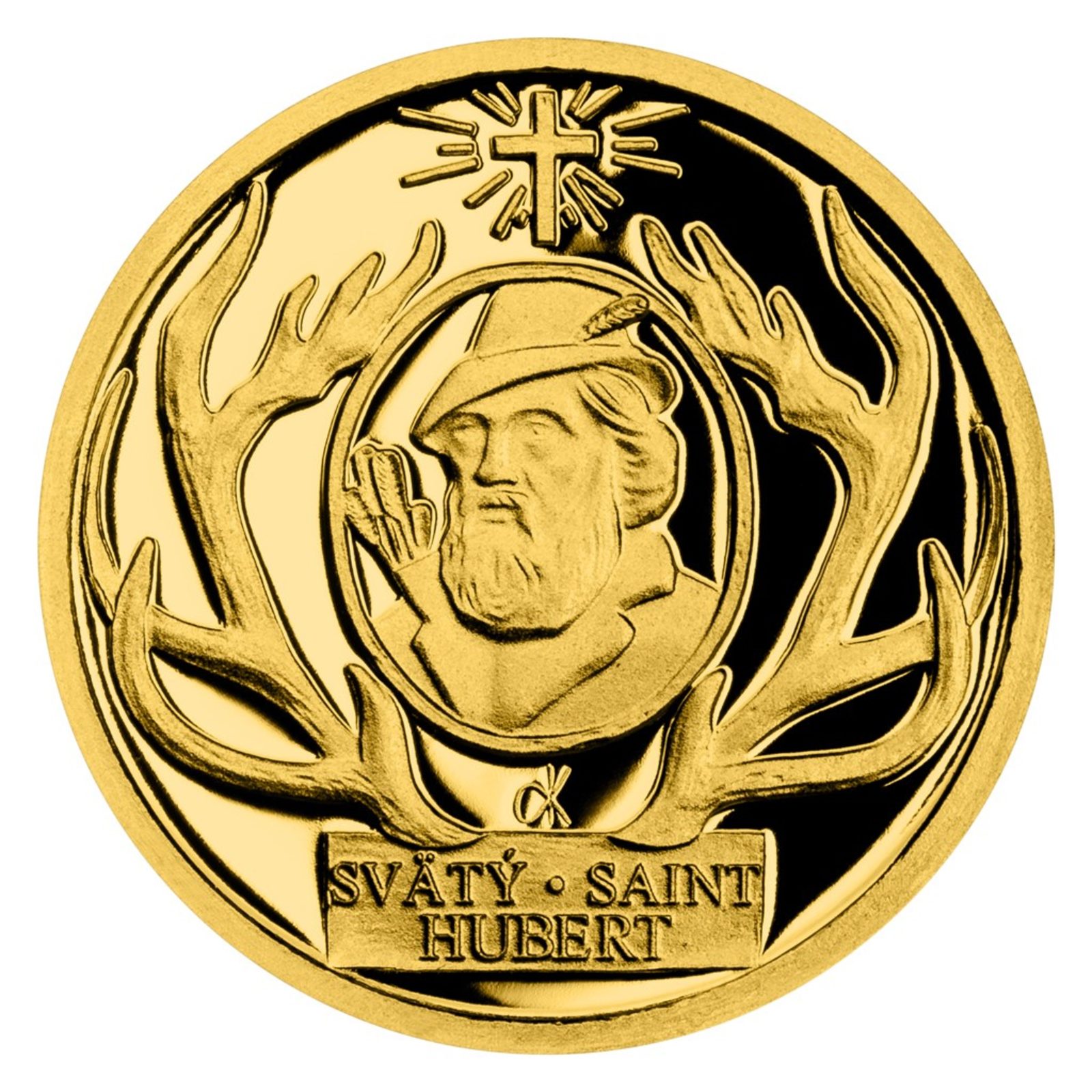 Zlatá mince Patroni - Svatý Hubert SK proof (ČM 2021)